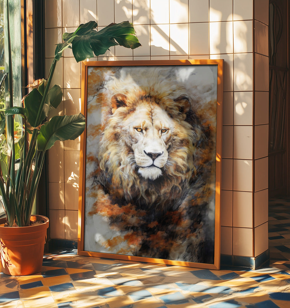 White Lion Watercolor Animal Art | Poster